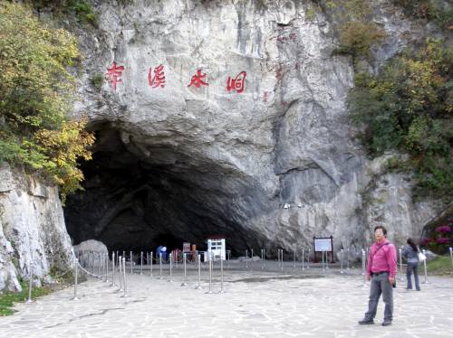 ![]() 本渓水洞(本渓鍾乳洞)入口 本渓市は、瀋陽の南南東六〇キロくらいの位置にあり、多くの観光客が訪れる観光地でもある。観光の目玉の一つが本渓水洞(本渓鍾乳洞)であり、四~五百万年前に形成された巨大な流水鍾乳洞がこの入口の奥に拡がる。 |