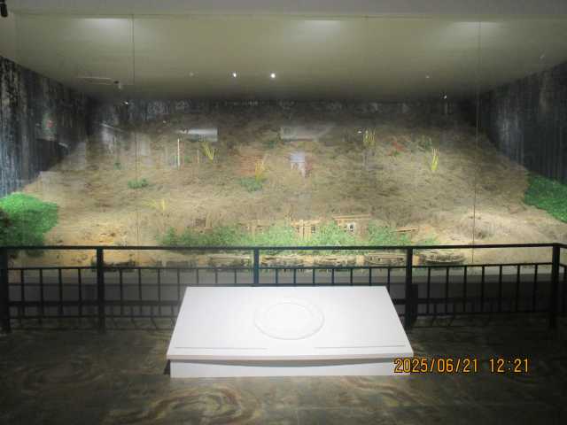 ![]() 遺体の埋葬場(旅順監獄墓地の復元模型) 「容疑者」の遺体が入れられた「棺桶」がずらりと並ぶ埋葬場の復元模型。実際の埋葬場は、監獄の近くにある山の麓に設けられた。 | ![]() 遺体の埋葬場(旅順監獄墓地の復元模型) 「容疑者」の遺体が入れられた「棺桶」がずらりと並ぶ埋葬場の復元模型。1910年3月26日に処刑された安重根義士の遺骨はまだ発見されていないようだ。 |