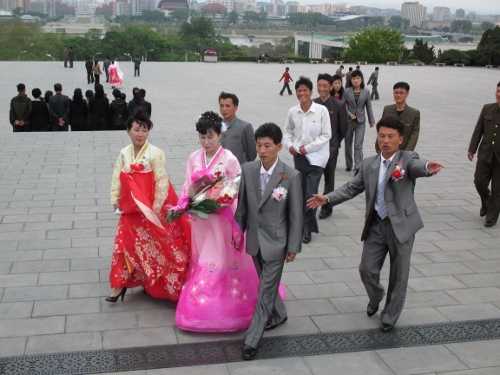 朝鮮の人たちの日常 2014年 二〇一四年の黄金週間に観光旅行で初めて朝鮮を訪ねた。それまでに海外へは何度も行ったことがあるが、朝鮮を訪ねたことはなかった。それゆえ、二〇一四年の朝鮮訪問は私にとって貴重な体験になった。 その朝鮮に対し日本のマスコミは悪意に満ちた否定的な報道を垂れ流すばかりなので、朝鮮の実情に触れる機会が全くない多くの日本人は朝鮮を変な国だと考え、朝鮮の全てを否定的に捉えているように思う。例えば、三代にわたり金氏父子が権力を継承する独裁国家だと批判する人がいる。しかし、そのように朝鮮を批判するのであれば、明治以降四代にわたり天皇父子が権力を継承する日本はどうなのだろう。天皇の「悪口」(公知の事実)を言うだけで命まで狙われるのが日本だ。朝鮮を変な国だと考えるなら、日本だって変な国だと考えざるをえない。はたして朝鮮は、本当に全てが変な国なのだろうか。 ともあれ、相手の全てを否定するのでは、お互いに理解しあうことはできない。まず、朝鮮の実情を知ることが日本人には必要だ。しかし、朝鮮の実情を伝える情報が日本には極めて少ないのが現実だ。それゆえ、私が朝鮮で見聞したことを紹介することも日本人が朝鮮の実情を知るのに少しは役立つと思い、私の朝鮮訪問記をお届けしたい。 (本文に続けて当ホームページに写真を掲載しているので参照ください) 平壌(ピョンヤン)‐万寿台の新郎新婦 四月二七日に名古屋から北京に入った私たちは、翌二八日に朝鮮の高麗航空を利用し北京から平壌に向かい、午後三時過ぎに平壌・順安空港に到着する。北京から平壌までは約二時間で、朝鮮国際旅行社の金春益さん(男性)と金順英さん(女性)が順安空港で迎えてくれた。二人は、これから朝鮮出国までの全行程を案内してくれるガイドだ。二人とも日本語がとても上手で、込み入った話でも何も問題なく普通に話すことができる。 さっそく、貸切りの観光バスに乗り順安空港を出発し、三〇分ほどで平壌市街まで移動する。そして、まず最初に万寿台の丘に行く。万寿台は平壌中心部で一番高いところにあり、平壌市街を見渡すことができる。その万寿台の丘の上に朝鮮革命博物館があり、博物館の前に金日成と金正日の巨大な像が設置されている。 この日は日柄が良いのか結婚式がたくさん行なわれたようで、家族や友人に付き添われた新婚の花嫁・花婿が万寿台の丘に何十組も訪れている。昼間に結婚式を行ない、夕刻の披露宴までの間に新郎新婦が名所旧跡をあちこち回り記念写真を写すのが朝鮮では流行になっているとのことだ。昔はプロの写真家に記念写真を写してもらっていたが、今ではデジタルカメラが普及しているので、友人や家族が写真係を買って出ている。新婦は、赤や桃色を基調とする婚礼用の色鮮やかなチョゴリを着ているが、新郎はだいたい(日本人の感覚では)普通のスーツにネクタイ姿で、「人民服」とでも呼ぶのか詰襟の服装の新郎も一部にいる。ともあれ、何十組もの新郎新婦と付き添いの家族・友人が万寿台の丘を訪れ、嬉しそうに記念写真を写している光景はほほえましく、嬉しい気分になる。 万寿台公園/平壌(ピョンヤン) 万寿台公園は平壌市内の高台にあり、平壌市街を見渡すことができる。この日は日柄が良いのか、たくさんの新婚カップルが、家族や友人に付き添われ訪れていた。新婚の記念写真を万寿台公園で写すのが「定番」になっているようだ。 2014年4月28日撮影 . |